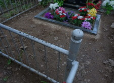 На момент осмотра места захоронения внешний вид был как у многих могил на кладбище. Старая ограда, памятник, цветник, голая земля и много искусственных цветов.