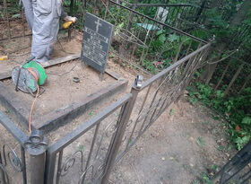 Покраска ограды на старом кладбище